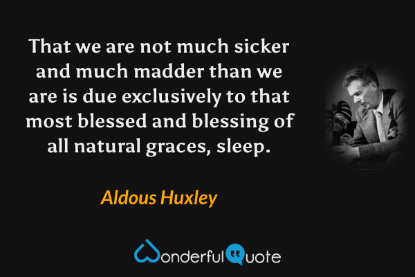 That we are not much sicker and much madder than we are is due exclusively to that most blessed and blessing of all natural graces, sleep.