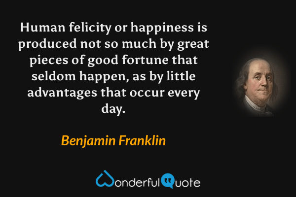 Human felicity or happiness is produced not so much by great pieces of good fortune that seldom happen, as by little advantages that occur every day.