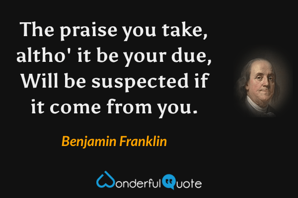 The praise you take, altho' it be your due, Will be suspected if it come from you.