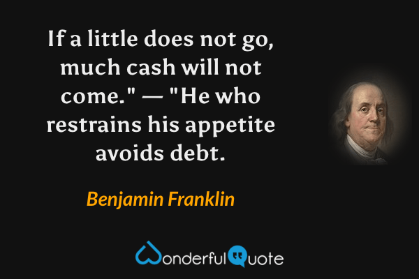 If a little does not go, much cash will not come." — "He who restrains his appetite avoids debt.