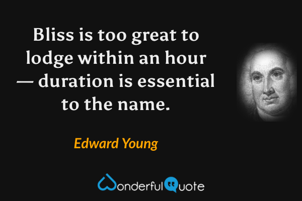 Bliss is too great to lodge within an hour — duration is essential to the name.