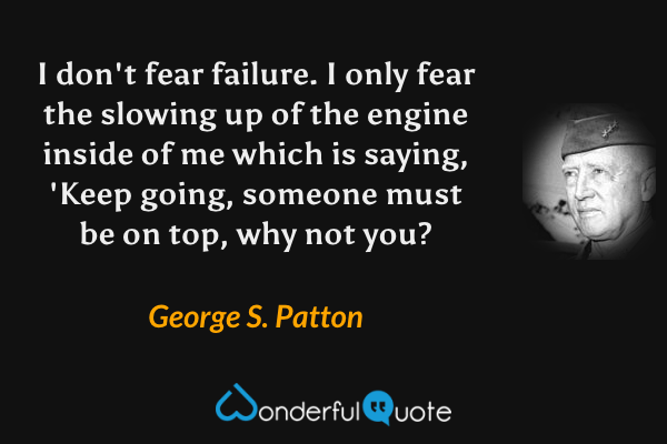 I don't fear failure. I only fear the slowing up of the engine inside of me which is saying, 'Keep going, someone must be on top, why not you?