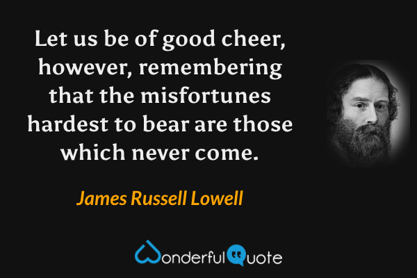 Let us be of good cheer, however, remembering that the misfortunes hardest to bear are those which never come.