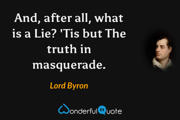 And, after all, what is a Lie? 'Tis but The truth in masquerade.