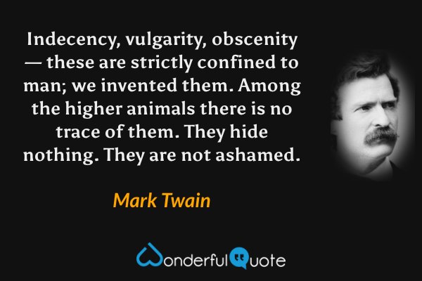 Indecency, vulgarity, obscenity — these are strictly confined to man; we invented them. Among the higher animals there is no trace of them. They hide nothing. They are not ashamed.