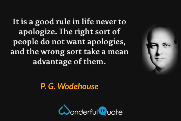 It is a good rule in life never to apologize. The right sort of people do not want apologies, and the wrong sort take a mean advantage of them.