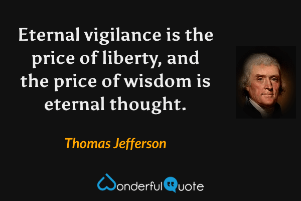 Eternal vigilance is the price of liberty, and the price of wisdom is eternal thought.