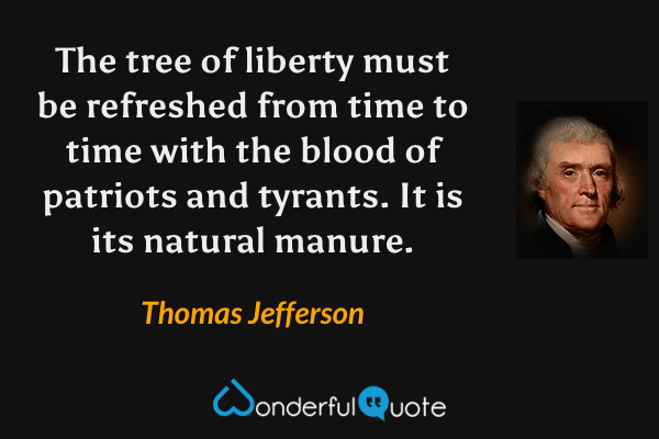 The tree of liberty must be refreshed from time to time with the blood of patriots and tyrants. It is its natural manure.