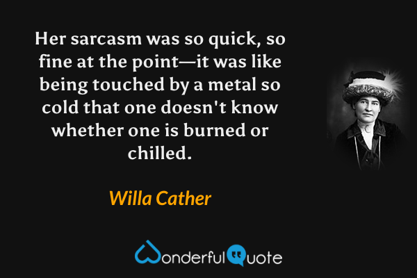 Her sarcasm was so quick, so fine at the point—it was like being touched by a metal so cold that one doesn't know whether one is burned or chilled.