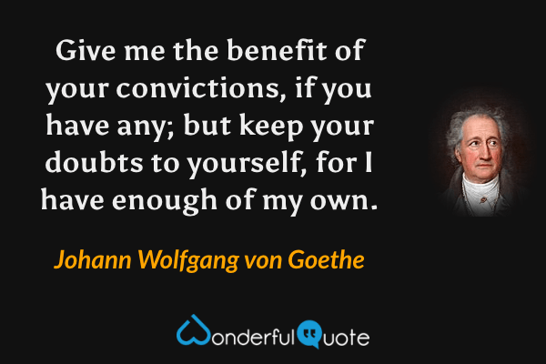 Give me the benefit of your convictions, if you have any; but keep your doubts to yourself, for I have enough of my own.