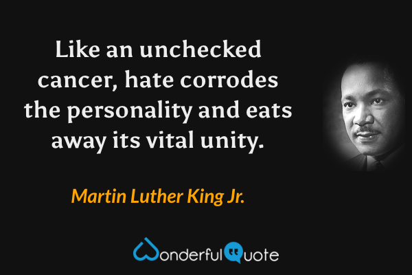 Like an unchecked cancer, hate corrodes the personality and eats away its vital unity.