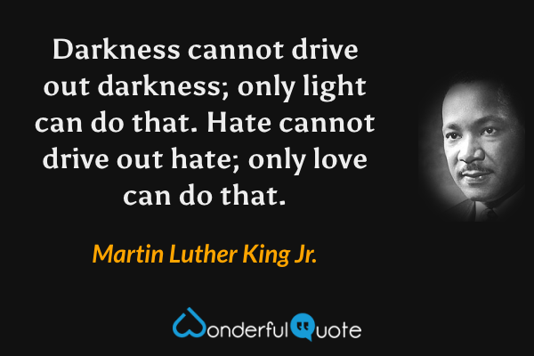 Darkness cannot drive out darkness; only light can do that. Hate cannot drive out hate; only love can do that.