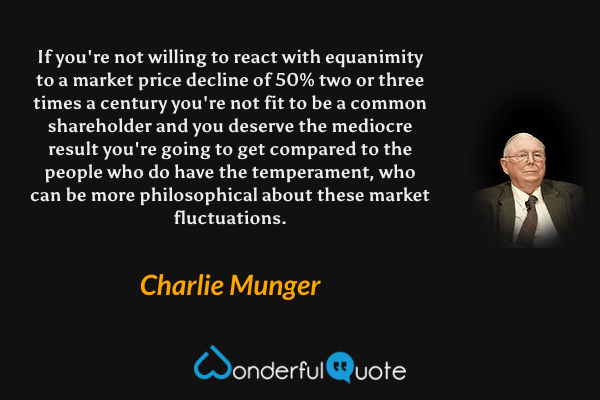 If you're not willing to react with equanimity to a market price decline of 50% two or three times a century you're not fit to be a common shareholder and you deserve the mediocre result you're going to get compared to the people who do have the temperament, who can be more philosophical about these market fluctuations.