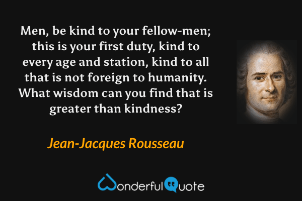 Men, be kind to your fellow-men; this is your first duty, kind to every age and station, kind to all that is not foreign to humanity. What wisdom can you find that is greater than kindness?