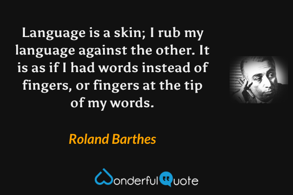 Language is a skin; I rub my language against the other. It is as if I had words instead of fingers, or fingers at the tip of my words.