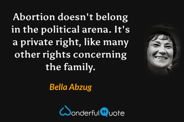 Abortion doesn't belong in the political arena. It's a private right, like many other rights concerning the family.