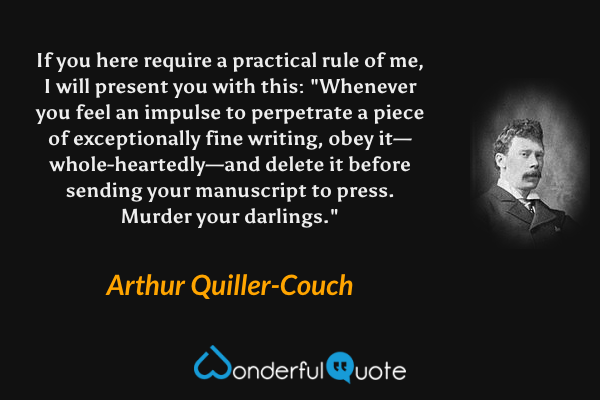 If you here require a practical rule of me, I will present you with this: "Whenever you feel an impulse to perpetrate a piece of exceptionally fine writing, obey it—whole-heartedly—and delete it before sending your manuscript to press. Murder your darlings."