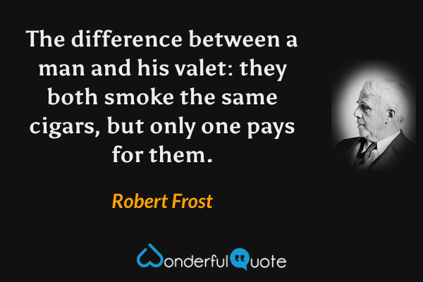 The difference between a man and his valet: they both smoke the same cigars, but only one pays for them.