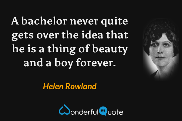 A bachelor never quite gets over the idea that he is a thing of beauty and a boy forever.